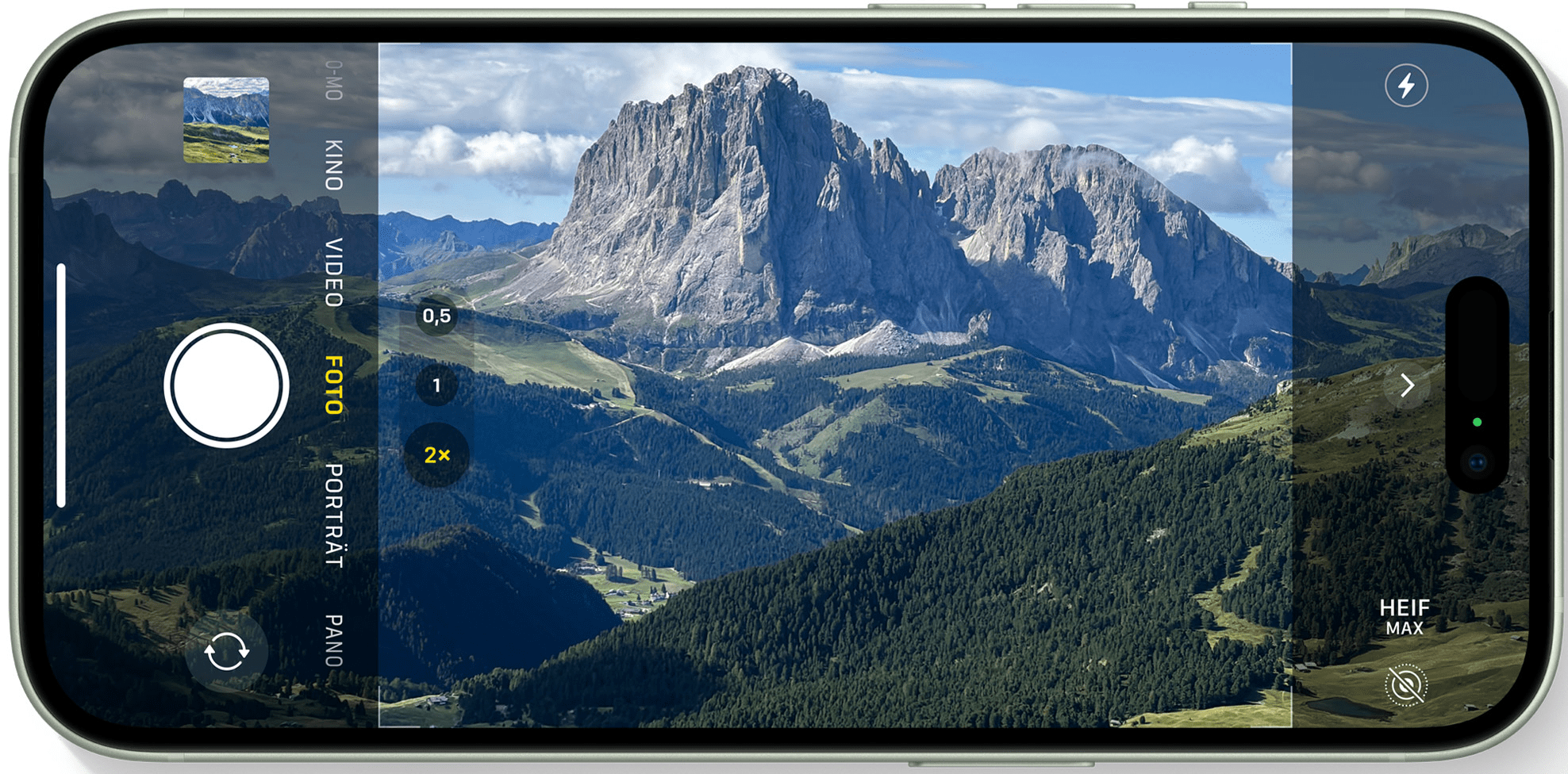 - Aufgenommene Bildformate: HEIF und JPEG